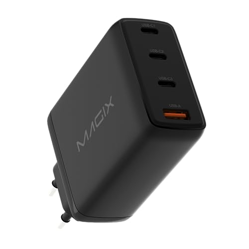Magix Chargeur 4 Ports 120W, GaN PD Power Delivery, 3X USB-C et 1x USB-A, pour MacBook Pro/Air, iPad Mini, iPhone série 15/14/13/12 etc, Galaxy S23, et Plus (EUR Plug)