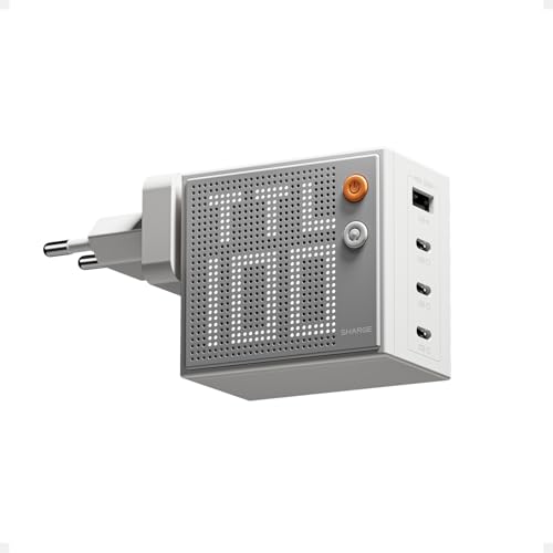 SHARGE Pixel 100 Chargeur GaN pour Ordinateur Portable, Chargeur Rapide 100W 4 Ports avec Ecran Smart et USB-C PD 3.0, Adaptateur Secteur Multiple pour MacBook Air, Galaxy S25/S24, iPhone 16/15
