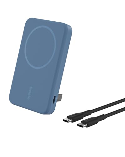 Belkin BoostCharge Pro Batterie Externe Magnétique sans Fil 5000mAh avec Qi2, Chargeur Portable Compatible MagSafe, Support intégré, Batterie Portable pour iPhone 16, iPhone 15, 14, 13, etc., Bleu
