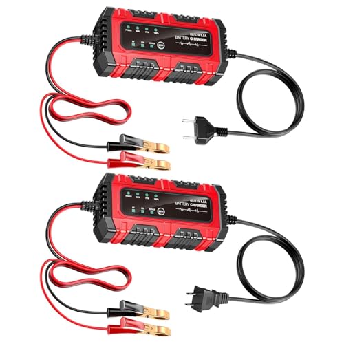BIRNN Chargeur de Batterie Moto 12V pour Husqvarna 125-501 Te/Te i/FE/TX/FX, Chargeur Automatique avec Maintien de Charge pour Moto, Scooter, Quad, Tondeuse et Batterie Auto,A Red