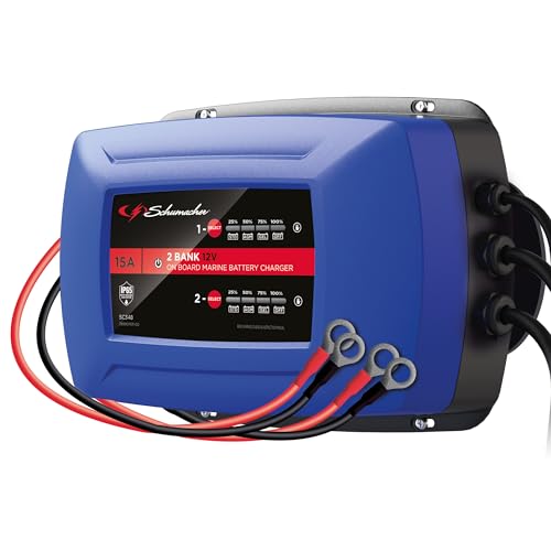 Schumacher Electric SC348-15A Chargeur pour Deux Batteries 12V Simultanées pour Bateau, Van, Camping-Car - Maintien de Charge Automatique et Intelligent - Ecran Numérique
