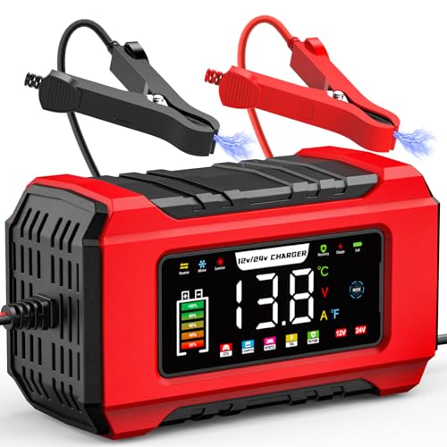 Chargeur Batterie Voitures 12V/24V 8A,Chargeur de Batterie Intelligent Moto avec Fonction Réparation,Maintien de Charge Auto,Écran LCD,pour Voiture Moto Camion,AGM,Gel,Wet,SLA (8-100 AH)