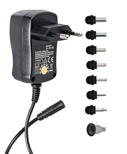 DEBFLEX - Chargeur Universel Multivoltage (3V/4.5V/5V/6V/7.5V/9V/12V) + 7 Embouts Adaptateurs - Chargeur pour PC Portable & Appareils Electroniques - Cordon 1,5 Mètre - Noir