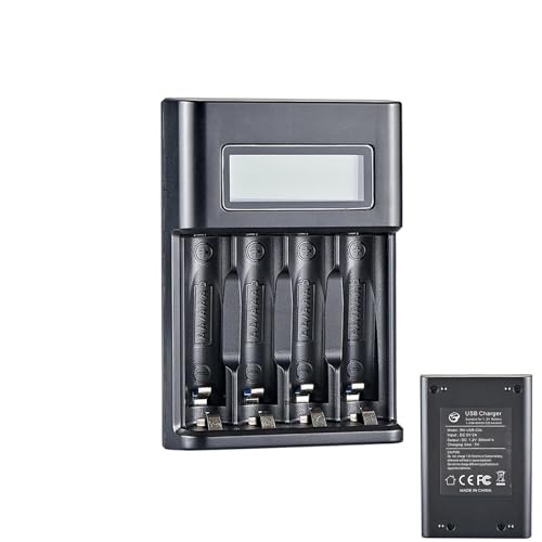 Chargeur De Piles Rechargeables AA,Chargeur Batterie 4 Baies Pour Batteries | Entrée USB Charge Rapide Et Emplacement Indépendant Avec Intelligent À Écr