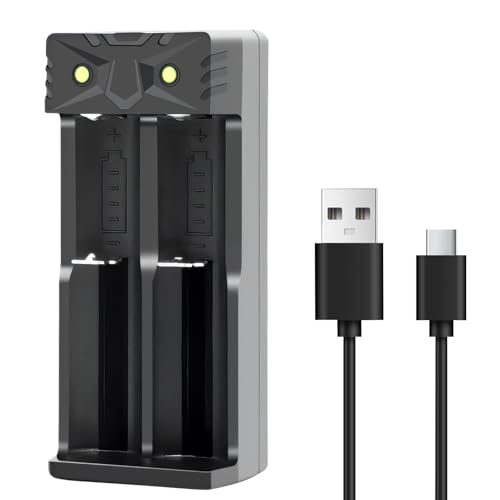 Chargeur Accu 18650,2 Fentes Chargeur de Piles Rechargeables avec Câble USB,Compatible avec Une variété de Batteries Li-ION 3,7 V 18650 26650 21700 18490 16340