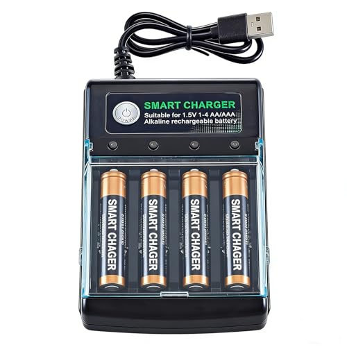 Régénérateur De Piles Alcalines,Chargeur De Piles Non Rechargeables,Chargeur De Piles alcaline Jetables,AA, AAA,4 Slots Indépendants,USB,Compatible 1,5v Piles Ni-Mh Et Alcalines Rechargeables (#A)