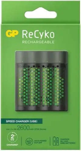Chargeur Piles Rechargeables AA et AAA avec 4 emplacements de Charge | GP | Chargeur Rapide USB avec lumière LED - Piles Non incluses
