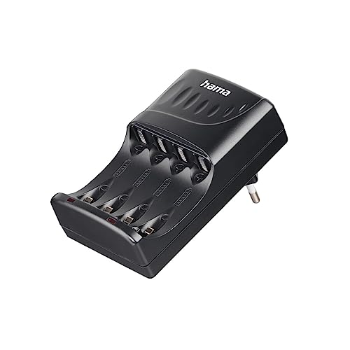 Hama Chargeur de Piles Rechargeables 4 Slots pour 2 à 4 Batteries NiMh AA ou AAA, Chargement simultanée de 2 ou 4 Batteries, Voyant LED de contrôle, Noir
