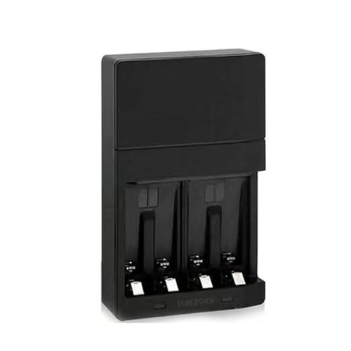 Chargeur de Piles Rechargeables 4 (AA/AAA), Couleur Noire, avec indicateur LED, Compatible avec Divers appareils électriques, idéal pour Un Usage Domestique.