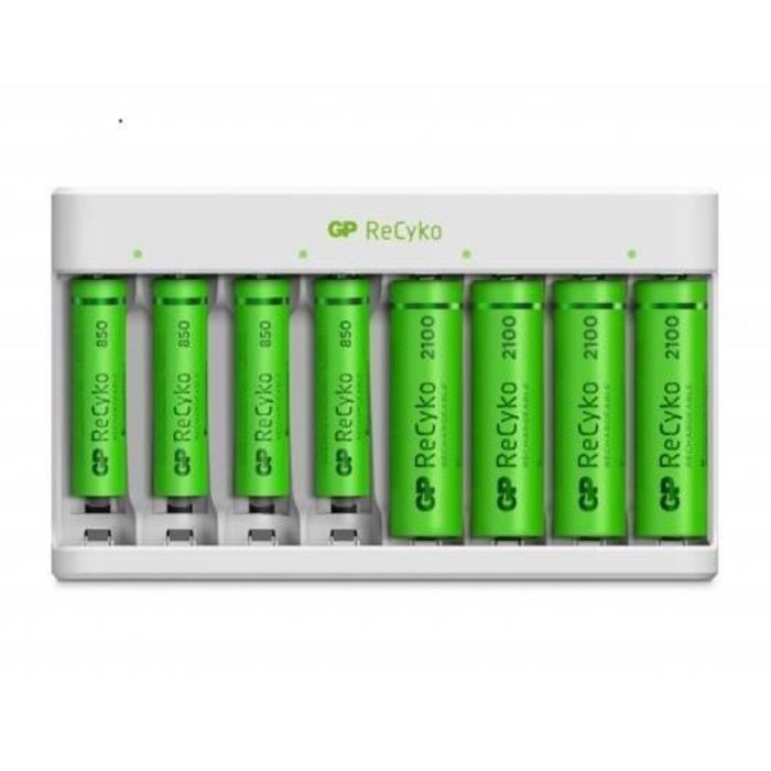 Chargeur pour Piles Rechargeables AA et AAA avec 4 Piles Rechargeables AA et 4 Piles AAA NiMH inclusesGP RECYKOChargeur Rapide