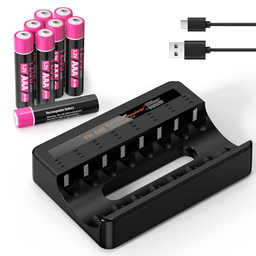 (8 Slots Chargeur+8AAA) Chargeur de Piles Rechargeables + 8PCS Piles AAA Rechargeables Puissantes, avec USB Ports pour Accus AA/AAA/Ni-MH