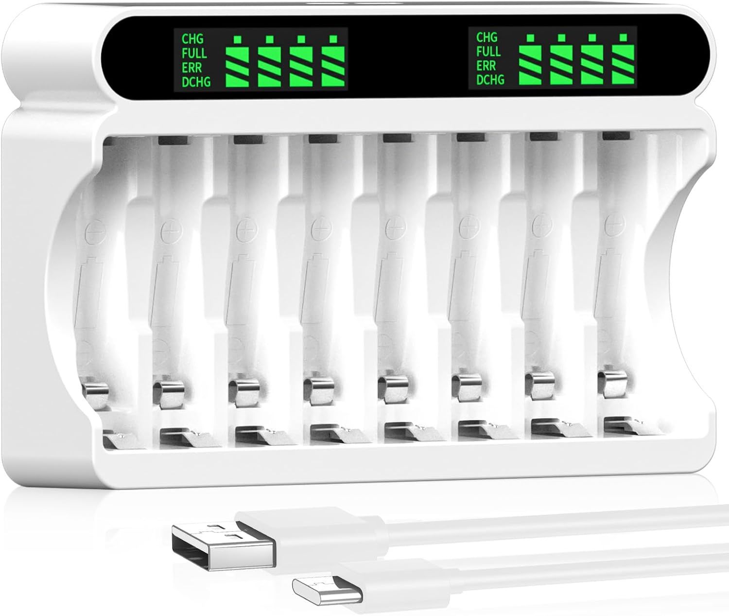 Chargeur de Piles Rechargeables, 8 Slots de Charge Indépendants avec écran LCD, 5V 2A Type-C et Entrée Micro USB, pour Batterie Rechargeable NiMH/NiCD AA AAA