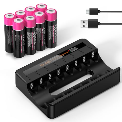 (8 Slots Chargeur+8AA) Chargeur de Piles Rechargeables + 8PCS Piles AA Rechargeables Puissantes, avec USB Ports pour Accus AA/AAA/Ni-MH