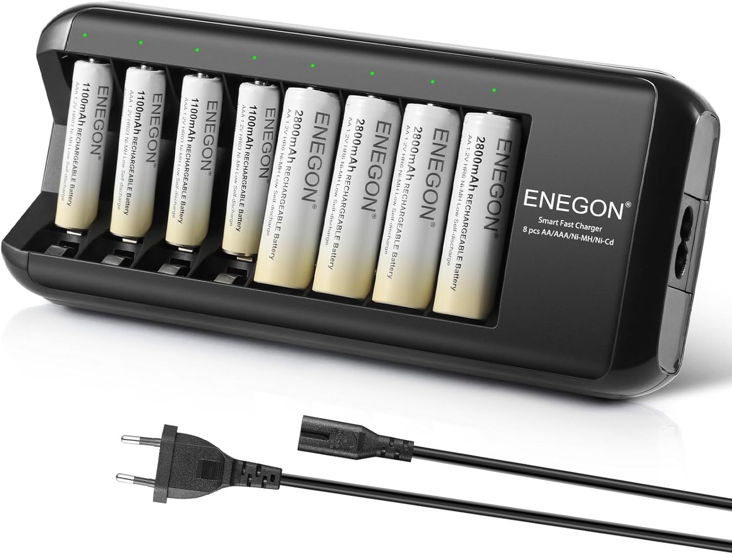 ENEGON Chargeur de Piles Rechargeables AA AAA avec Écran LCD – 8 Slots Indépendants – Chargeur Rapide Intelligent Ni-MH/Ni-CD avec Protection – Adaptateur Secteur 100-240V