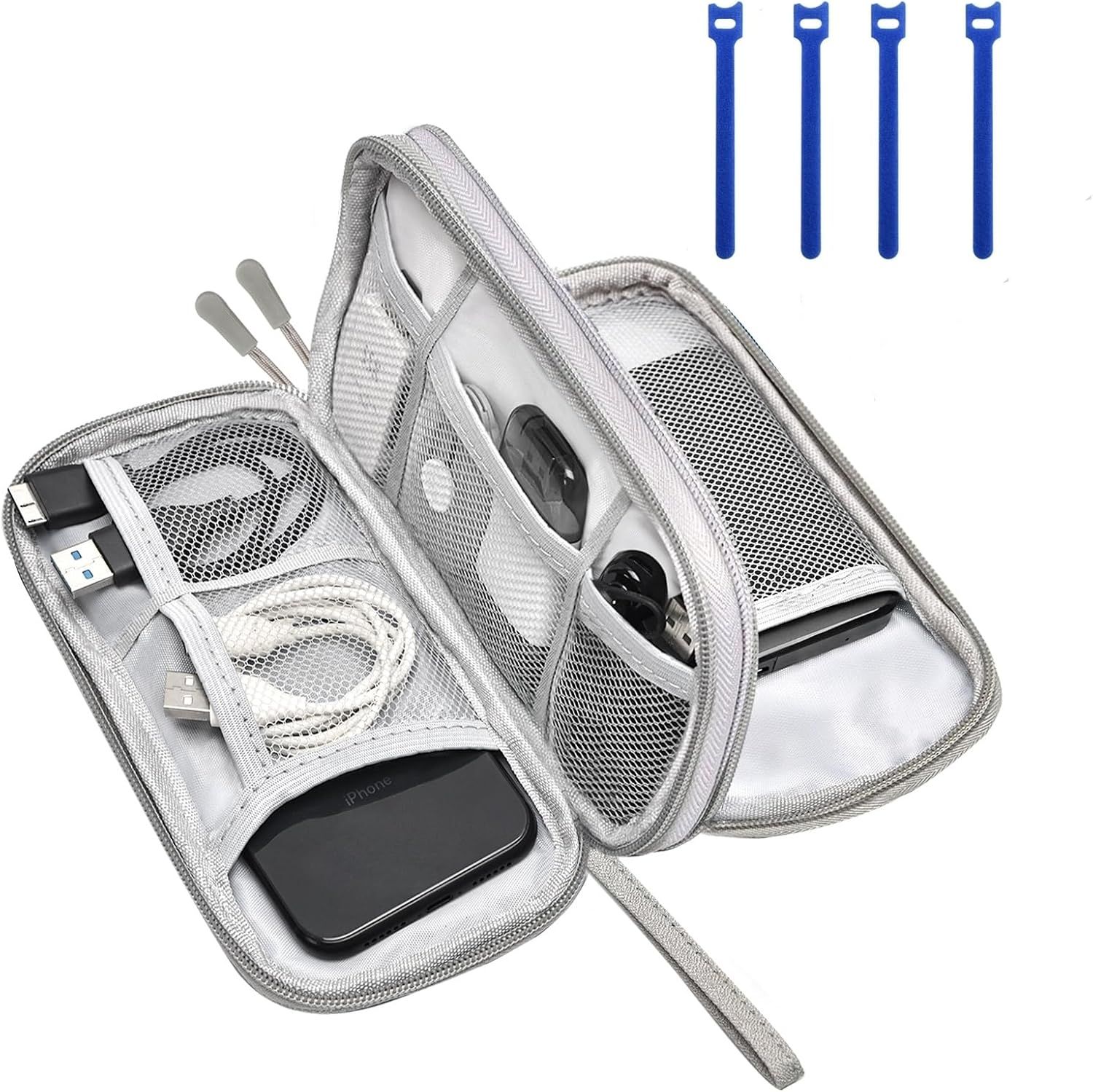 Organisateur Sac A Dos, Cable Organizer, Rangement Cable Chargeur Portable Universel Pour Adaptateur, Câble, Carte Sd, Chargeur, Souris, Banque D'Alimentation, Bleu