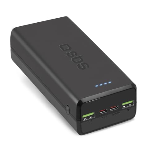 SBS PowerBank 30 K Fast, 30 000 mAh Power Delivery, Charge Rapide 20 W, Adaptive Fast Charge (AFC), LED d'état, USB-C, USB-A, Chargeur pour iPhone, iPad, AirPods, Samsung, Tablette, Smartphone