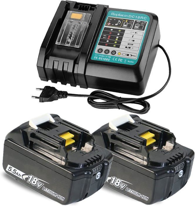 2x Batteries 5.5Ah+Facile Chargeur Rapide Compatible pour makita 18V Li-ion BL1815 BL1820 BL1830 BL1840 BL1850 BL1845 BL1860