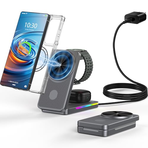 Chargeur Induction Mag-Safe pour Samsung, Station de Charge Magnétique pour Galaxy S25Ultra S24, Chargeur Samsung Watch Pliable pour Galaxy Watch Ultra 8 7 6 Buds Pro Anneau Mag Inclus