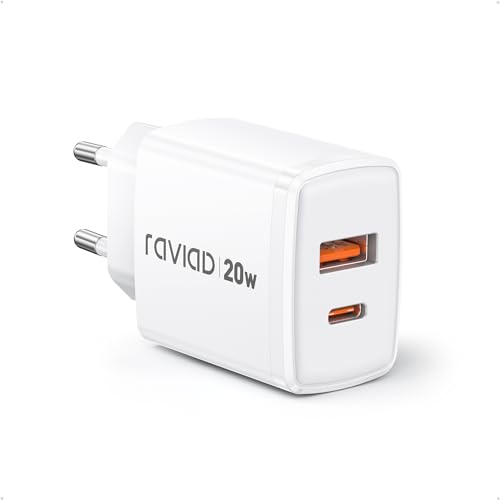 RAVIAD 20W Chargeur USB C Charge Rapide, Chargeur Rapide à USBA et C, Chargeur iPhone pour iPhone 16 15 Pro Max, Samsung Galaxy S25 S24 S23 Ultra S22, iPad Pro, Macbook