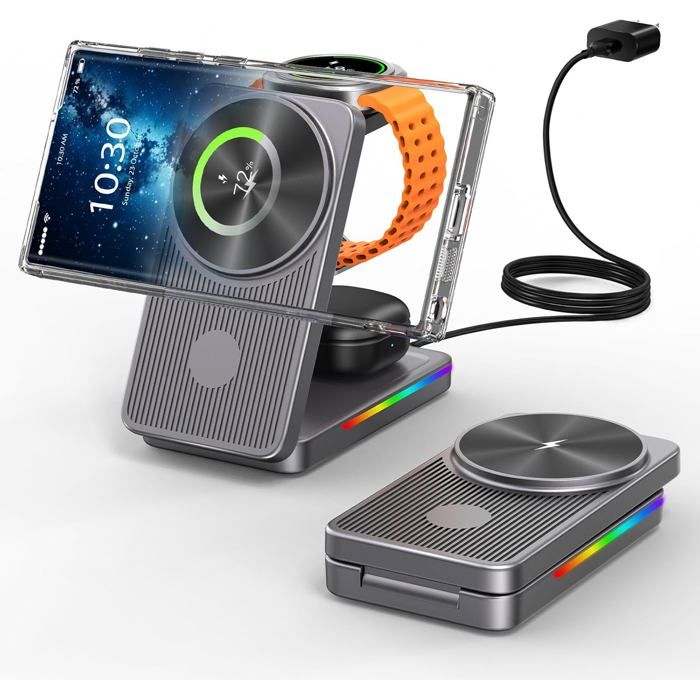 Chargeur Induction Mag-Safe pour Samsung Station de Charge Magnétique pour Galaxy S25Ultra S24 Chargeur Samsung Watch Pliable