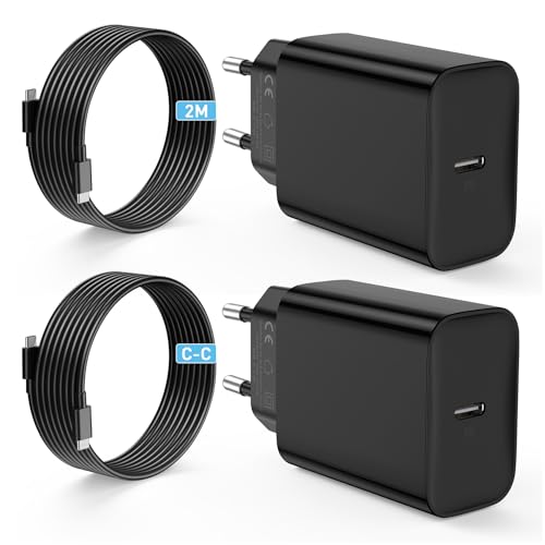 30W Chargeur USB C Rapide for Samsung Galaxy S25 S24 S23 S22 S21 S20fe A54 A53 A52 A51 A50,iPhone 17 16 15, iPad Pro Mini Air, Type C Charge Secteur Prise avec 2M Câble (2 Pack)