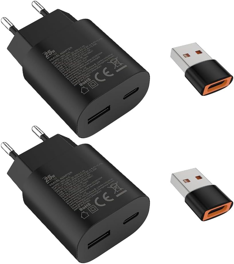 Chargeur USB C Rapide, 20W 2 Port Adaptateur USB A Type C Secteur Prise pour Samsung Galaxy S24 Ultra S23 FE S22 S21 S20 A55 5G A54 A53 A35 A34 A25 A15 A14 A05s, iPhone 16 Plus Pro Max 15 14 13 12