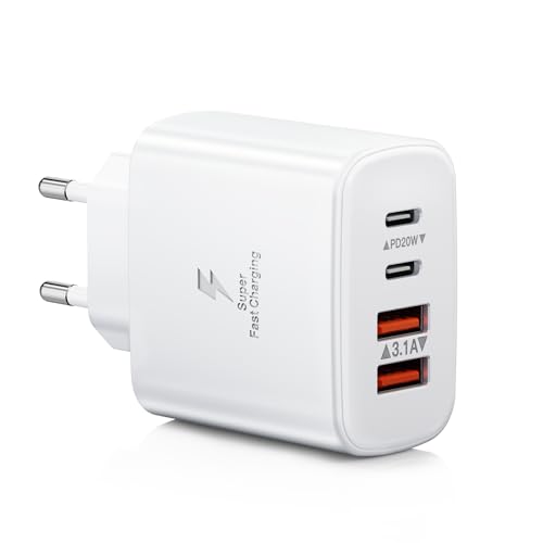 Chargeur USB C, 40W 4-Port USB Multiple Bloc Chargeur Rapide Multiple Secteur PD+QC 3.1A Type C Adaptateur pour iPhone 17 16 15 14 13 12 Pro Max Samsung S24 Ultra S23 S22 iPad Xiaomi Huawei Google