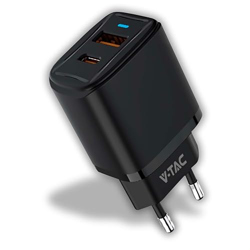 V-TAC Chargeur Rapide PD 20W USB-C pour iPhone et Samsung – Ultra Rapide pour Smartphones et Appareils – 2 Ports USB Type C et USB A pour iPhone 13/14 / 15/16 Pro/Max et Galaxy S24 /S25 / S26