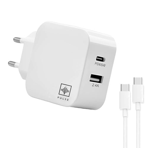 PULSE® Chargeur USB-C 65W Technologie GaN - Charge Ultra-Rapide 60% en 30 Min - Câble USB-C de 1,5m - Compact et Idéal pour Les Voyages - Compatibilité Universelle iPhone, Samsung, Mac, Win