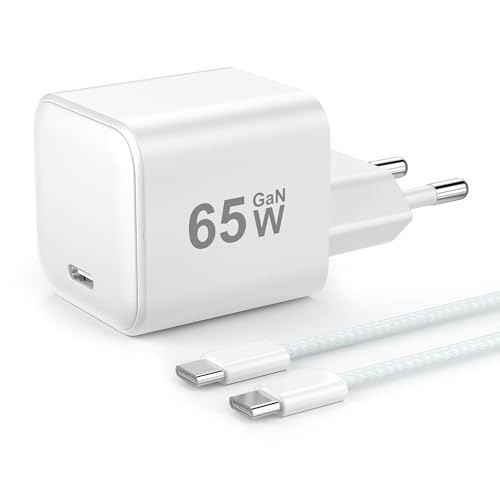 Chargeur Rapide USB C 65W, GaN Tech avec 2 Ports pour i-Pad Pro/Air, i-Phone 15/14/13/12,Samsung Galaxy S24/S23/S22 Tab S9/S8,Huawei,Xiaomi,Google,Macbook,Tablettes,Smartphones,Ordinateurs Portables