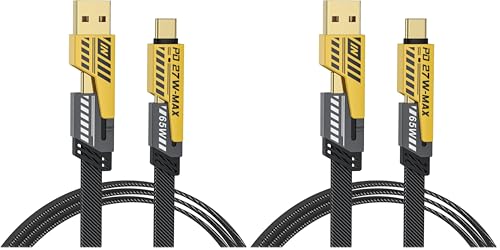 YISH Câble Multi USB 4 en 1 Universel:1.8M Multiple USB Câble Chargeur, Nylon Chargement Câble Charge Rapide avec USB A/USB C vers 65W Type C/27W PD Compatible avec iPhone Samsung Galaxy Macbook iPad