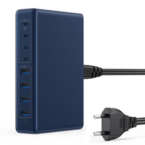 200W GaN III USB C Chargeur Multiple 8-Port QC4.0+PD 65W pour Ordinateur Portable, Adaptateur pour MacBook Pro/Air, iPhone, Samsung Galaxy - Bleu