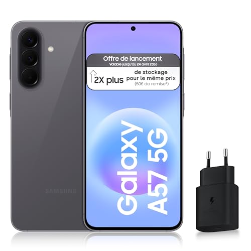 Samsung Galaxy A57 5G, Smartphone Android, 256 Go, Chargeur Secteur Rapide 25W Inclus, Smartphone déverrouillé, Gris, Version FR
