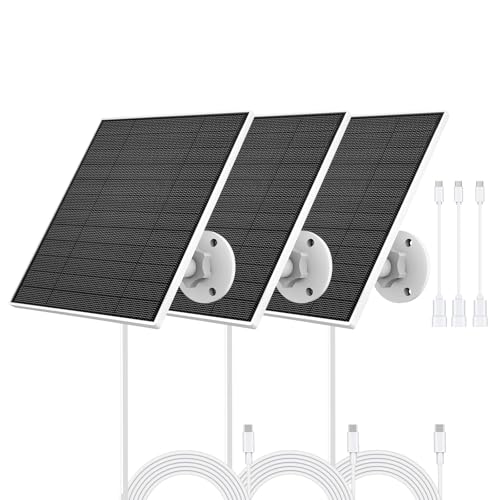 Panneau Solaire pour Caméra Ring, 5W Solaire pour Caméra pour Ring Stick Up Cam/Pro Batterie, Spotlight Cam/Pro/Plus Batterie, Wyze Batterie Pro, Chargeur Solaire pour Caméra avec 9.8ft Cable, 3 Pack