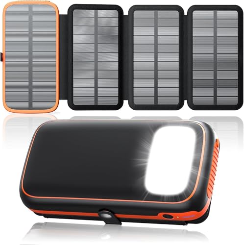 WOWMVP Batterie Externe Solaire 26800mAh, PD15W Chargeur Solaire Power Bank Portable USB C 3A Charge Rapide avec 3 Ports, Câbles et Lampe pour Smartphone, Tablette, Camping et Plus (Orange)