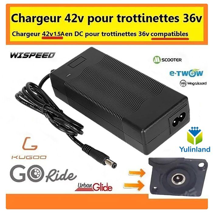 YULINLAND Chargeur Trotinette Electrique 42V 1.5A Chargeur Xiaomi M365 pour Batterie Lithium 36V avec Connecteurs
