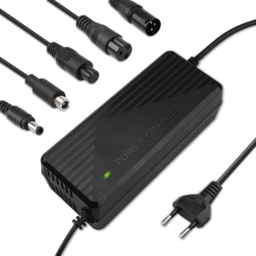 Yeerain Amélioré 42V 3A Chargeur Trotinette Electrique, pour Toutes Les Batteries Lithium 36V DC, Chargeur Hoverboard avec 4 Connecteurs, Chargeur Universel pour Hoverboard,Trottinette, Xiaomi