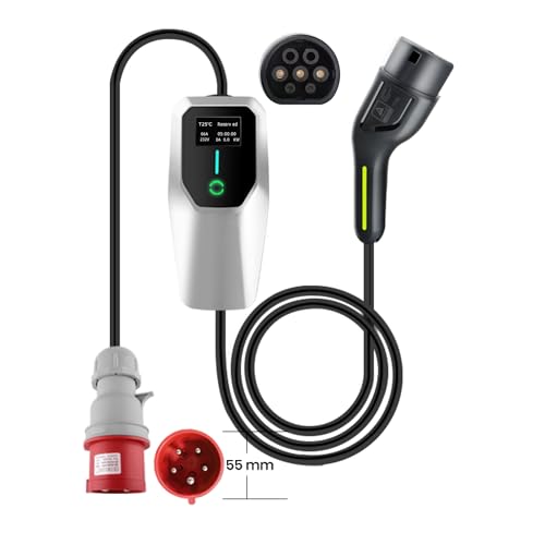VDLPOWEREU Chargeur Voiture Electrique,11KW EV Chargeur Type 2, Cable Recharge véhicule Electrique 6-16A avec CEE 3-phasé Prise, IP65 (IEC 62196-2), Écran LCD