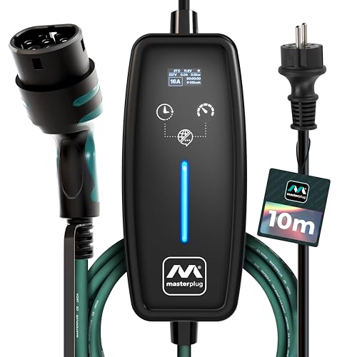 Masterplug Câble de Charge VE pour véhicules électriques et Hybrides, 10 mètres, Mode 2, Prise Schuko à 3 Broches UE vers Chargeur de Voiture Type 2, 3,6 KW, 16 A, EVCM221610G/EU