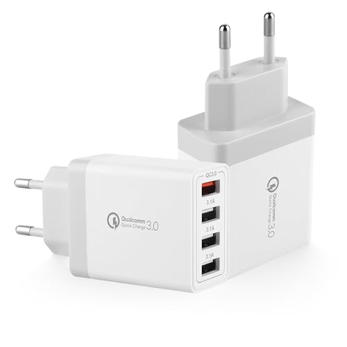 2 Pack Chargeurs USB, Adaptateur de Charge USB 4-Ports avec Chargeur Rapide Intelligent QC 3.0 33W Multi-Alimentation pour iPhone 15/14/13/12/11/Samsung Galaxy S23/22/S21/S20/Xiaomi/Huawei etc.