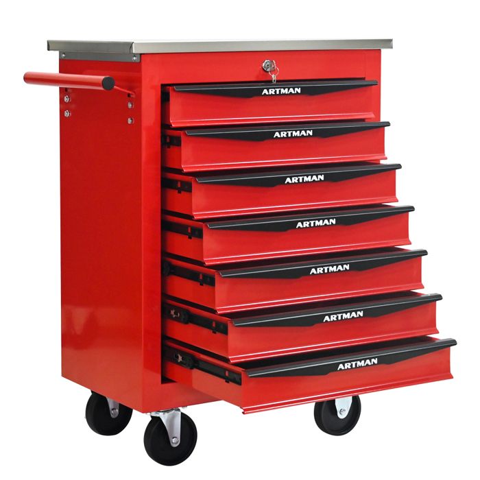 Servante datelier -Caisse a outil -Chariot à roulettes -AVEC 7 Tiroirs verrouillables rangement -Rouge -524 x 33 x 777 cm