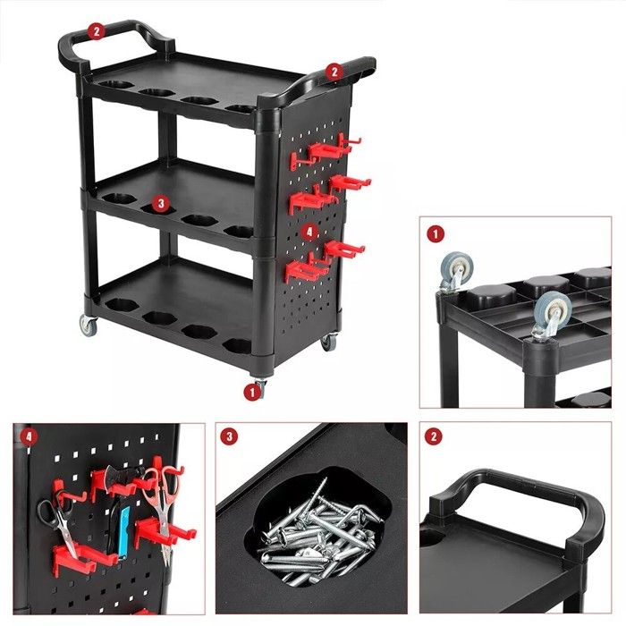 Chariot servante d’Atelier Chariot à Outil à 3 Niveaux de Stockage Chariot à Outils 4 Rainures et Mains Courantes Charge 150 kg