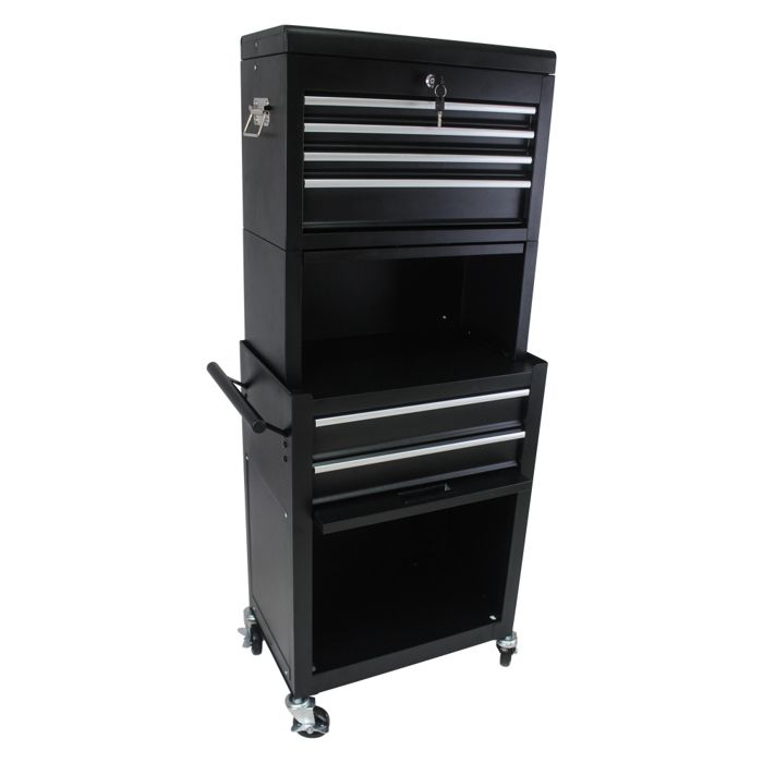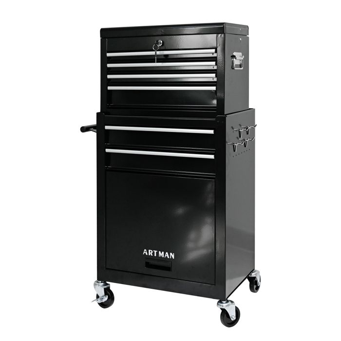 Servante datelier -Caisse a outil -Chariot à roulettes -AVEC 6 Tiroirs verrouillables rangement -Noir -524 x 33 x 777 cm