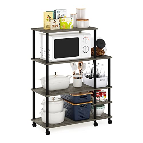 Furinno 21028GYWFBK Chariot de Rangement de Cuisine sans Outil à 4 Niveaux Large, Engineered Wood, Chêne Français Gris/Noir, 39,6 (P) x 89,4 (L) x 117,1 (H) cm