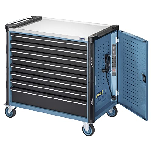 HAZET Chariot à outils vide 179NXXL-8D/3 Chariot à outils, chariot à matériel avec bloc multiprises et porte latérale, pour un transport peu encombrant Capacité de charge (dynamique) : 750 kg, capacité de charge (statique) : 1000 kg Bleu''.