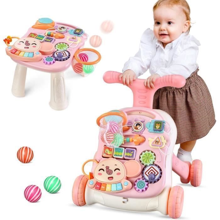 Trotteur et Table Activité Bébé 2 en 1 Chariot de Marche avec Centres Dactivités Multifonctionnels Détachables Jouets Musical
