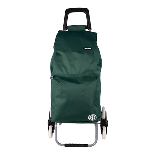 Cofan Chariot de courses pliable avec 6 roues | Montez les escaliers | Sac de 42 litres | Poche de congélation | Matériau : fer | Vert/bleu (vert, 42 litres)