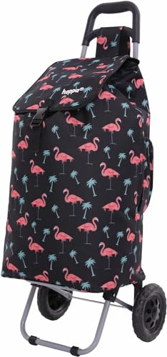 Hoppa 47L Chariot à roulettes léger à 2 Roues - Chariot de Courses Pliable et résistant - Poussette de marché imperméable de qualité supérieure - Sac de Chariot de Courses avec Poche - Flamant