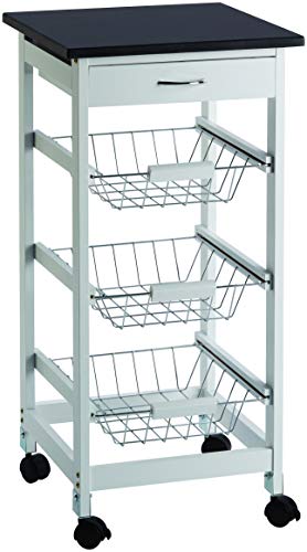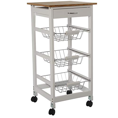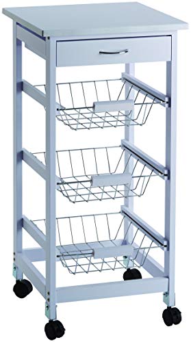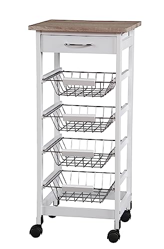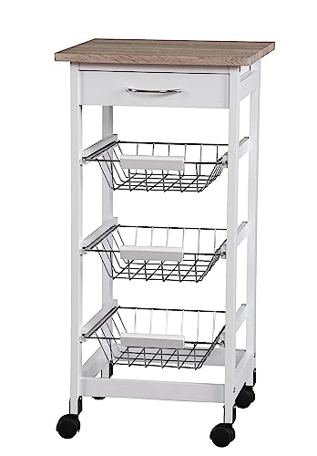 DRW Chariot de Cuisine avec 2 paniers et 1 tiroir en Bois Blanc 47 x 37 x 86 cm