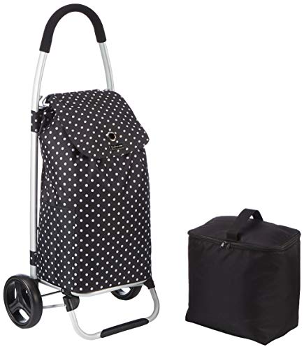 KitchenCraft Chariot De Cuisine Pliable À Roulettes Avec Sac Réfrigérant Amovible Pour Aliments Surgelés, Métal Robuste Et Polyester Résistant À La Douche, 45 X 33 X 100 cm, Imprimé Noir À Pois